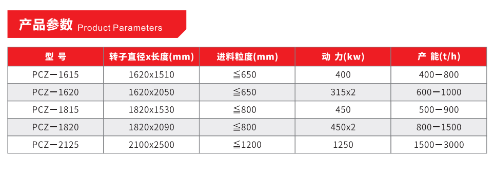 1、進料粒度大、破碎比大、出料均勻;